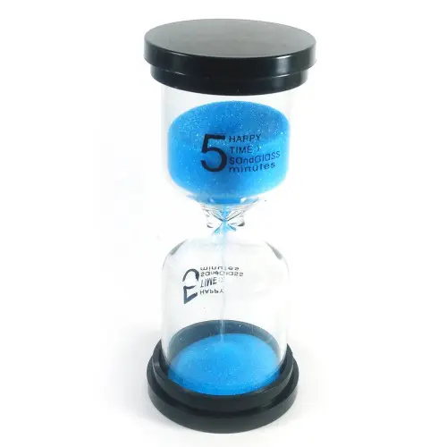 Представляємо вам елегантний пісочний годинник на 5 хвилин з синім піском - унікальне поєднання стилю та функціональності.