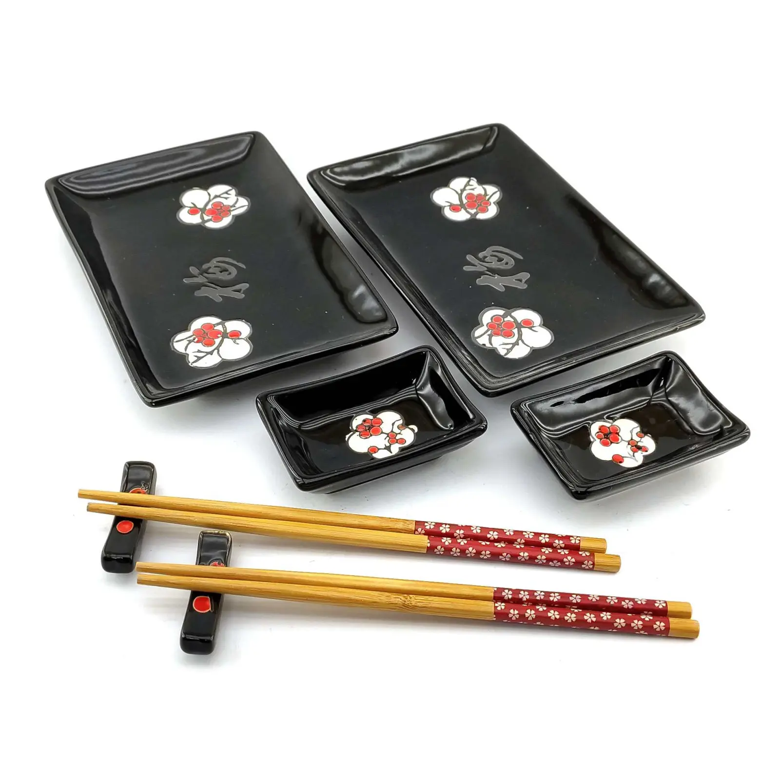 Сервіз для суші "Квіти сакури з ієрогліфом на чорному тлі" (2 персони) (28х28, 3х3, 5 см)